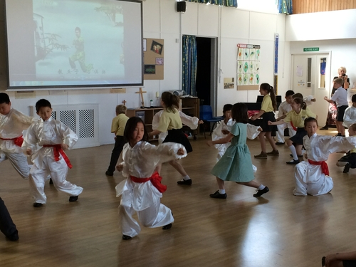 school、圣马丁小学、恩斯肯等学校参与了中国文化周活动。学生们融入班级,体验绘图、情绪管理、法语、绘本故事、体育课、探究课、音乐课、晨会课等丰富多彩的校园课程活动。在圣马丁小学,学生们参与了“走进印第安”探究课,据学校老师介绍,学校每个年级都有一个探究主题,围绕主题,各学科挖掘与探究主题相融合的内容,形成校本拓展课程,如本学期就有“beach、鸡的一生、走进印第安”等。师生们还参加了圣马丁小学的晨会课,校长Jame主持了颁奖表彰会,颁发了在校园活动表现出色及进步大的学生,中英友好学校互赠代表友谊的礼物,中英小伙伴也进行了互动交流,互相赠送了精心准备的Specil的礼物,如:英国学生自己设计的校杯、中国小伙伴自己写的书法、京剧脸谱、书签等。